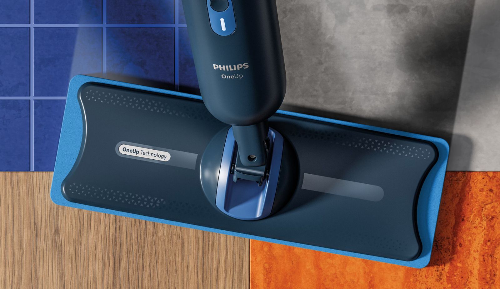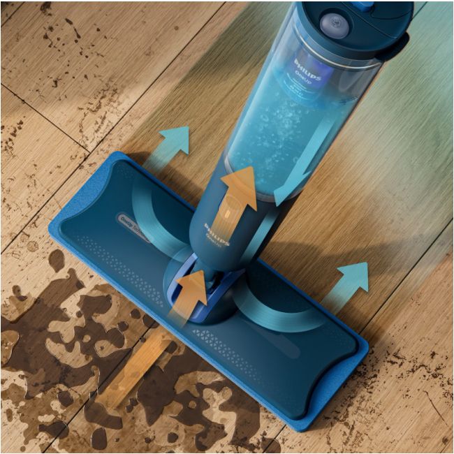 Jednoczesne mopowanie i suszenie dla uzyskania nieskazitelnie czystych podłóg. Pady mopujące Philips OneUp zapewniają optymalne i równomierne nawilżenie z 50% szybszym efektem schnięcia**