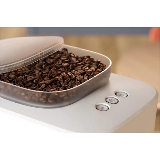 Ekspres na tyle mały, aby zmieścić się na każdym kuchennym blacie, a jednocześnie wystarczająco mocny, aby przygotować kawę jak od baristy. Zmienia ziarna w fusy, które doskonale nadają się na kompost.