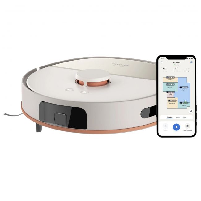 - Wyjmowany akumulator - Tryb zwiększonej mocy ssania na dywanie - Rozplątywanie włosów - Aplikacja Philips Aqua - Mapowanie wielu pięter, zapis do 5 map - Wybór pomieszczenia do czyszczenia - Wybór trybu czyszczenia wg pomieszczenia - Wybór sekwencji czyszczenia pomieszczeń - Poziomy mocy ssania: 4