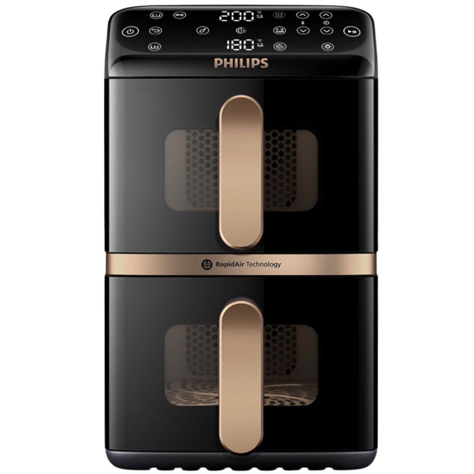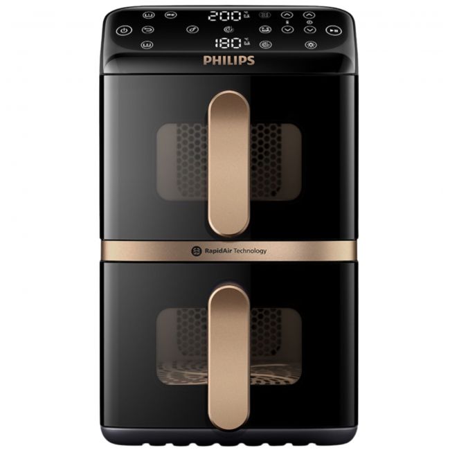Nasz pionowy Philips Ovi z dwoma koszami pozwala przygotować dwa pełne posiłki jednocześnie, oszczędzając miejsce. Co więcej, dzięki technologii Vertical RapidAir smak posiłków jest zawsze niezwykle wyraźny i delikatny.