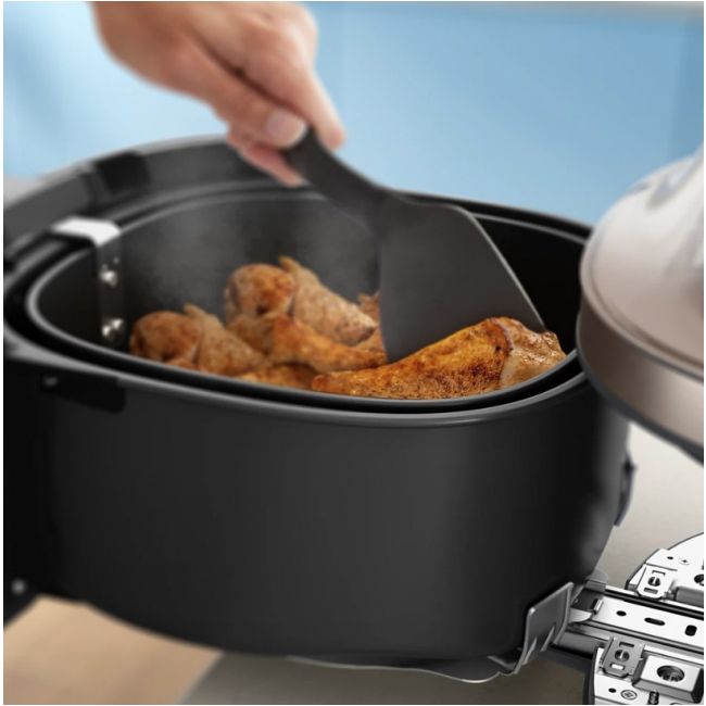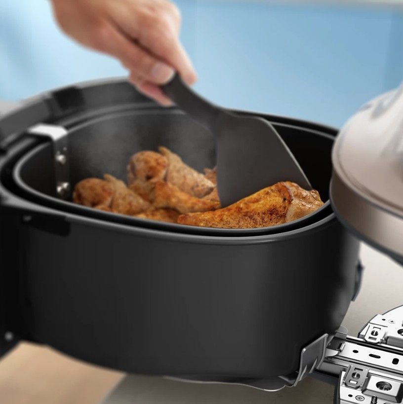 Bez głośnych zakłóceń — ciesz się rozmową lub muzyką, podczas gdy airfryer gotuje na parze, grilluje i piecze.