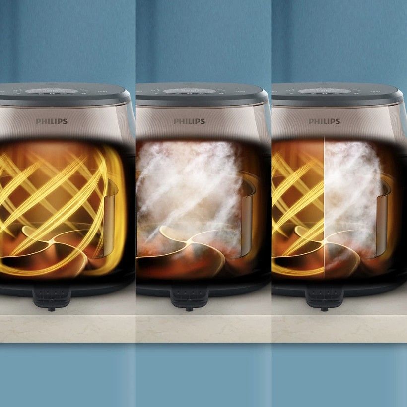 Teraz możesz mieć to, co najlepsze z obu światów. Smażenie beztłuszczowe i gotowanie na parze jednocześnie zapewnia złocistą chrupkość na zewnątrz i soczystą delikatność w środku. Idealne do złocistych bułeczek cynamonowych, chrupiącego pieczywa, soczystego kurczaka i warzyw na najwyższym poziomie. Koniec z przypalaniem lub niedogotowaniem.******