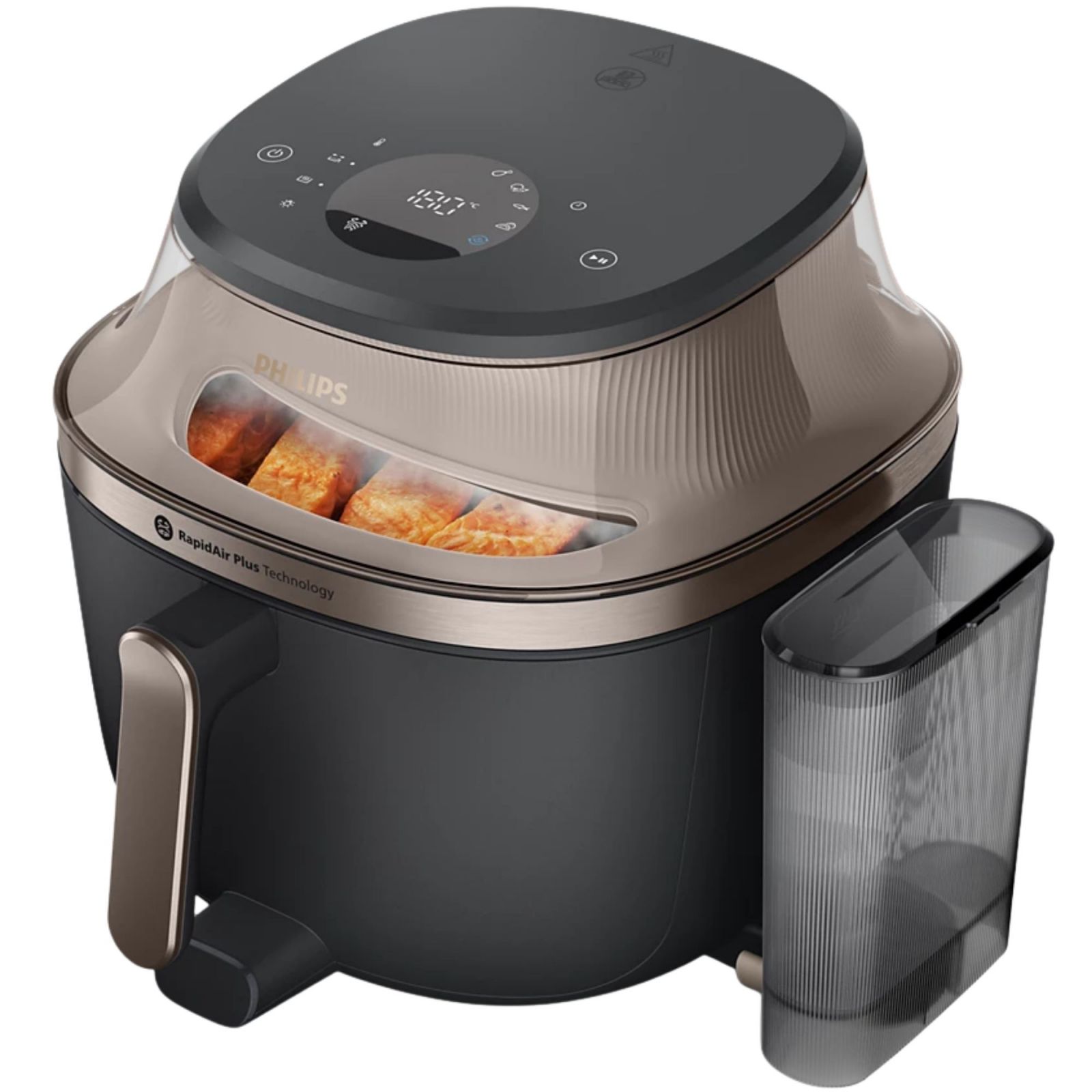 Koniec z przypalaniem lub niedogotowaniem. Technologia RapidAir Plus z unikalnym gwiaździstym wzorem umożliwia szybszą cyrkulację gorącego powietrza wokół i przez składniki***, zapewniając równomierne gotowanie za każdym razem z użyciem do 90% mniej tłuszczu.*