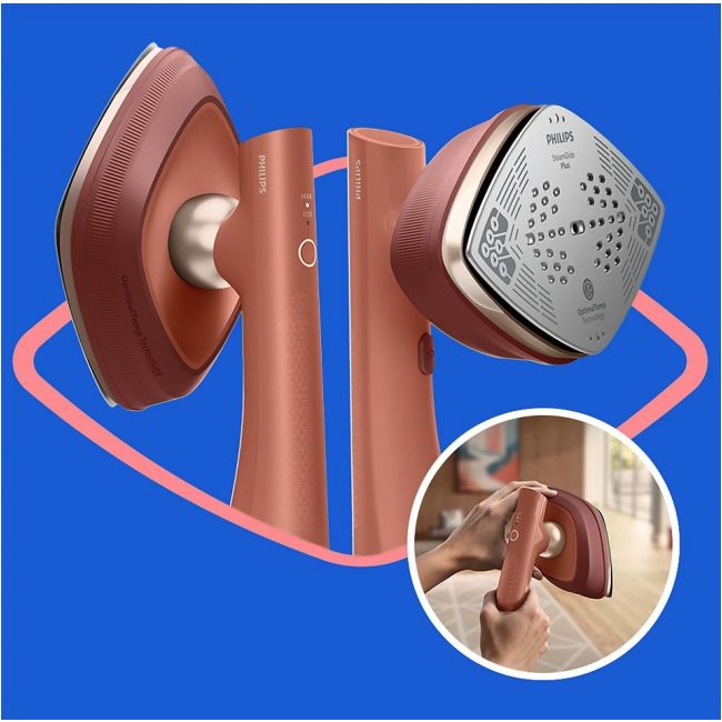 Philips OneTurn poradzi sobie zarówno z dużą ilością prasowania, a jednocześnie idealnie sprawdzi się do szybkiej poprawki w ostatniej chwili. Bez deski do prasowania, bez długiego czekania – tylko doskonale gładkie rezultaty, gdy tylko ich potrzebujesz. Zaprojektowany z myślą o oszczędności czasu i wygodzie, wyposażony jest w wygodną matę StyleMat, która umożliwia prasowanie lub wygładzanie w dowolnym miejscu – na stole, łóżku lub blacie – chroniąc jednocześnie powierzchnie.