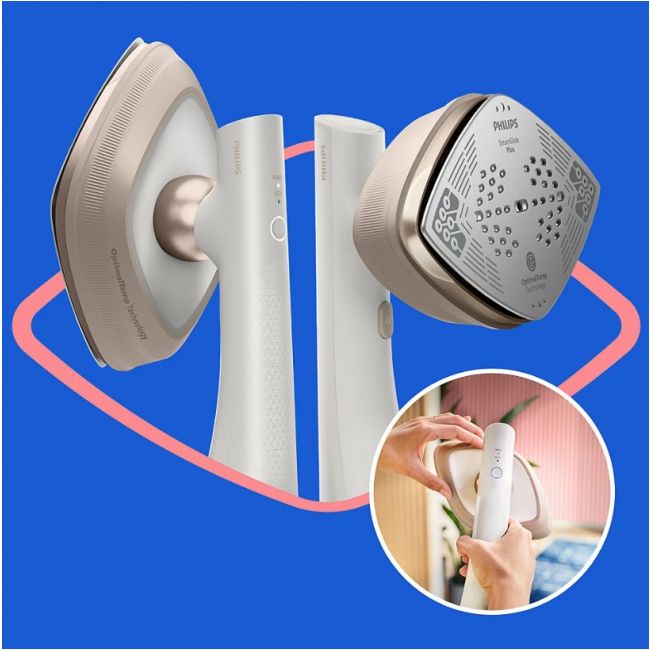 Philips OneTurn poradzi sobie zarówno z dużą ilością prasowania, a jednocześnie idealnie sprawdzi się do szybkiej poprawki w ostatniej chwili. Bez deski do prasowania, bez długiego czekania – tylko doskonale gładkie rezultaty, gdy tylko ich potrzebujesz. Zaprojektowany z myślą o oszczędności czasu i wygodzie, wyposażony jest w wygodną matę StyleMat, która umożliwia prasowanie lub wygładzanie w dowolnym miejscu – na stole, łóżku lub blacie – chroniąc jednocześnie powierzchnie.