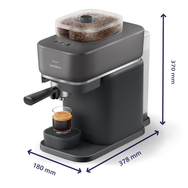 Twój osobisty barista, który zmieści się na każdym kuchennym blacie. Wsyp ziarna, przesuń uchwyt i delektuj się idealnym espresso. To naprawdę takie proste! Ekspres automatycznie mieli ziarna, uwalniając ich super świeży aromat. Perfekcyjnie ubija kawę w portafiltrze, a do tego idealnie dobiera ciśnienie. Twój nowy ulubiony barista, który czeka na każde skinienie. Tobie pozostaje cieszyć się idealną kawą.