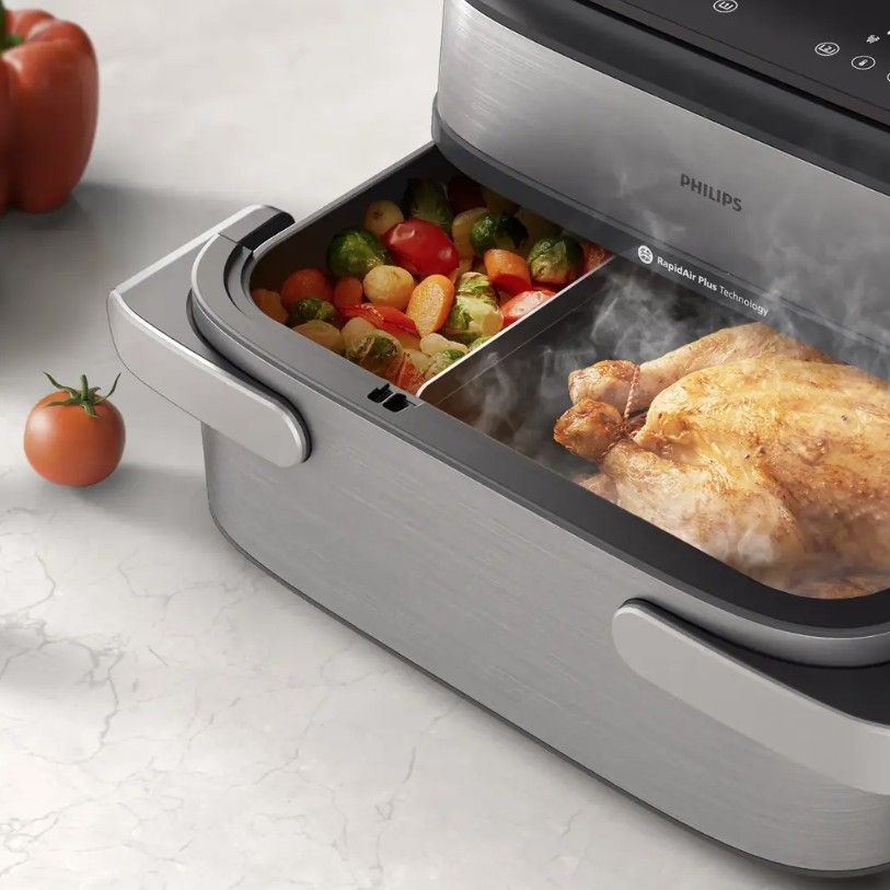 Para i gorące powietrze współpracują ze sobą, zapewniając rezultaty wykraczające poza chrupkość – zatrzymują wilgoć, zwiększają delikatność i tworzą tekstury, które są zarówno soczyste, jak i złociste, dając to, co najlepsze z obu światów. Idealne do złocistej pizzy, chrupiącego chleba, soczystego kurczaka i pieczonych warzyw w Philips Ovi Ultra z funkcją Steamfry.