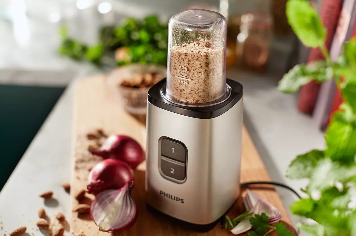 Ten miniblender poradzi sobie ze wszystkim, bez względu na to, czy przygotowujesz warzywny dip czy zdrowy koktajl. Możesz skruszyć i drobno zmielić każdy składnik – od kiwi po kostki lodu.