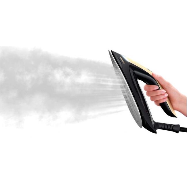 Żelazko Philips PerfectCare 8000 bardzo ułatwia prasowanie. Dzięki nowej technologii wykorzystującej czujnik ruchu. Niezależnie, czy prasujesz w poziomie czy pionie, żelazko samo dostosuje siłę wyrzutu pary. Tym samym, zapewnia szybsze prasowanie i mniej wysiłku dla Ciebie.