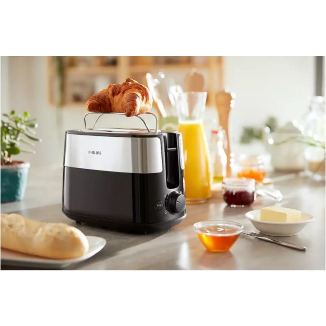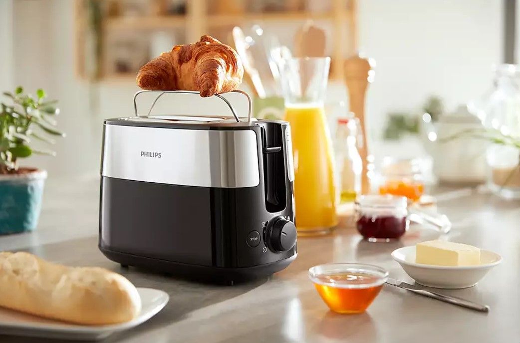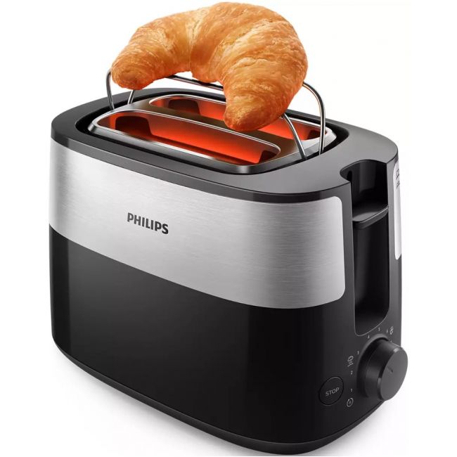 Kompaktowy toster z 8 ustawieniami, wyposażony w 2 duże regulowane otwory, które zapewniają równomierne opiekanie każdego rodzaju pieczywa. Wbudowany ruszt pozwala także łatwo podgrzewać bułki, ciastka i rogaliki.