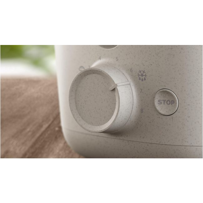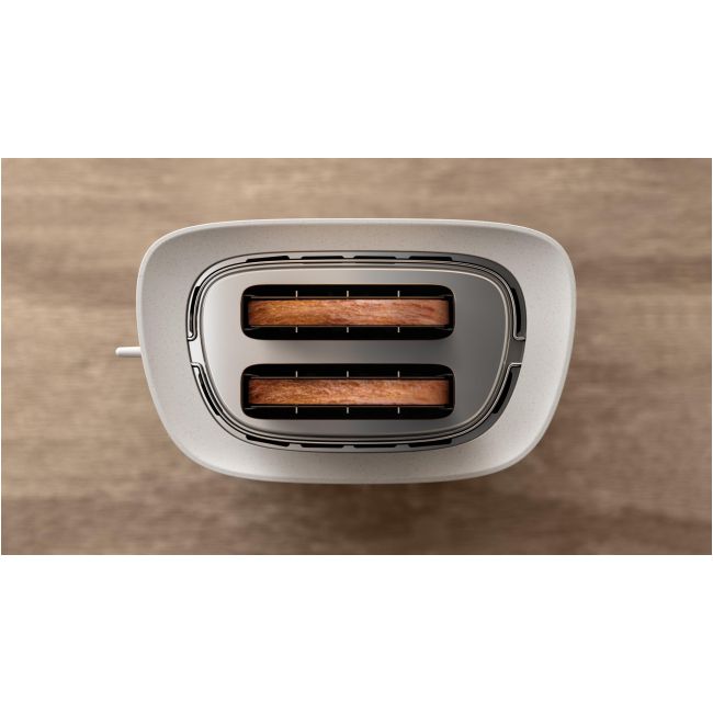 Do produkcji urządzenia wykorzystano 100% bioplastiku² pochodzącego z biologicznych i odnawialnych zasobów, np. oleju słonecznikowego. Zużyty olej, który pozostał po pieczeniu lub innych procesach produkcyjnych, jest zbierany i poddawany recyklingowi w ekologicznym procesie, który czyni go zdanym do kontaktu z żywnością. Toster został wyposażony w funkcję automatycznego wyłączania, zapewniającą dodatkowe bezpieczeństwo.