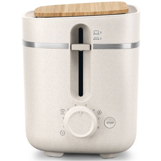 Konstrukcja inspirowana przez naturę charakteryzuje się łagodnymi kolorami i naturalnymi materiałami. Zawiera zdejmowaną pokrywę w stylowy drewniany wzór, która chroni toster przed kurzem w czasie, gdy nie jest używany. Kolekcja Philips Eco Conscious zdobyła nagrodę IF za wzornictwo oraz Red Dot in 2022 roku.