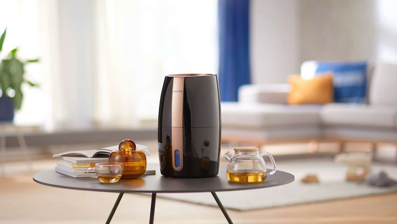 Woda zawiera minerały, wapno i magnez, a gdy jej krople osiadają na meblach, ścianach i podłogach, może powstawać biały osad. Technologia Philips skutecznie temu zapobiega. Bardzo drobna, niewidoczna mgiełka jest zbyt mała, aby przenosić minerały. Dodatkowo cząsteczki mgiełki są lekkie i pozostają na dłużej zawieszone w powietrzu, które równomiernie nawilżają, nie tworząc mokrych plam wokół urządzenia.
