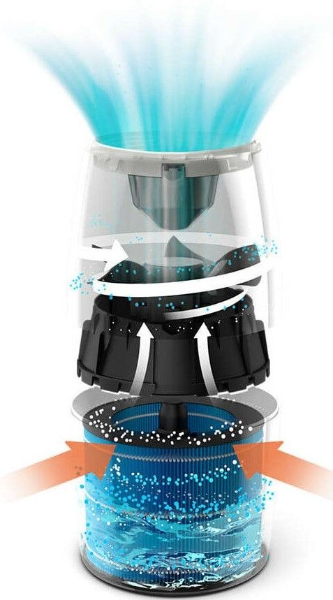 Zaawansowany system parowania dodaje do suchego powietrza cząsteczki wody. Następnie nawilżone powietrze przechodzi przez wentylator, który rozbija je na jeszcze drobniejsze cząstki, tworząc niewidoczną mgiełkę.